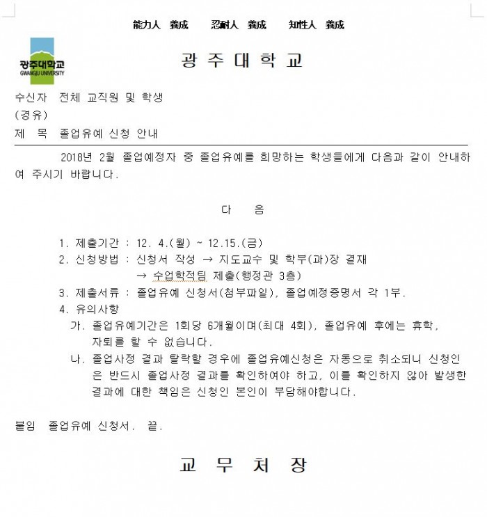 졸업유예 신청 안내