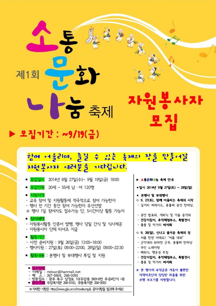 무등복지관 지역행사 자원봉사자 모집 홍보!