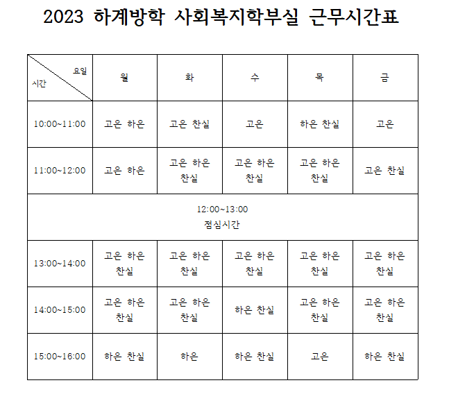 학부실 운영시간 : 월~금 10:00 ~ 16:00