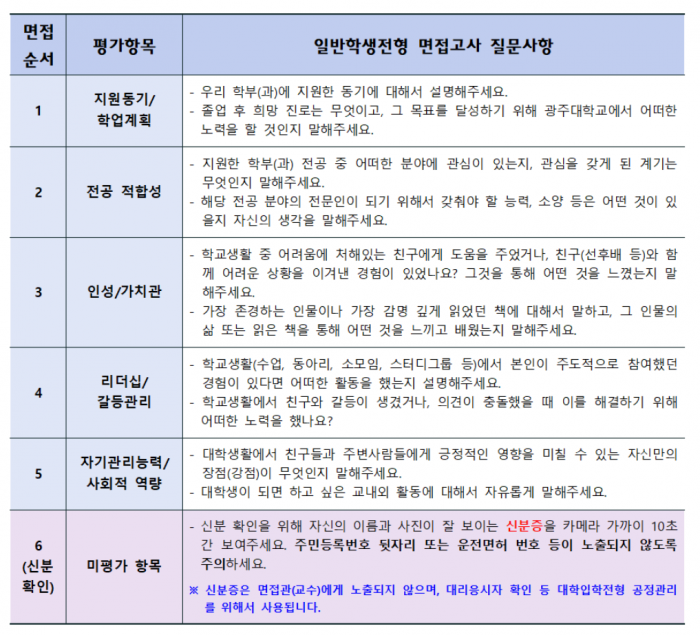 2023년 수시 지원자 온라인 비대면 면접 안내 페이지 정보 작성자 학과관리자 댓글 0건 조회 589회 작성일 22-10-07 15:42 목록 본문 2023년 수시 지원자들은 위 면접지표를 참고하여 준비하시면 되겠습니다. 이전글<수정>[2022-2 하계 사회복지현장실습 실습 지원비 지급 안내] 22.10.21 다음글2023년 광주대 사회복지학부 지원자들은 참고하세요 22.10.06 댓글 0 댓글목록 등록된 댓글이 없습니다.