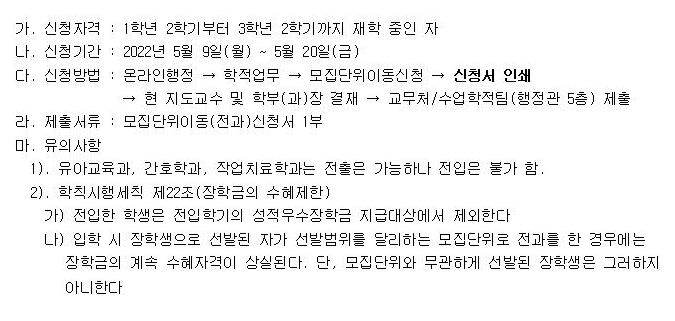 [전과 신청 안내] 페이지 정보 작성자 학과관리자 댓글 0건 조회 259회 작성일 22-04-28 14:18 목록 본문 전과 신청 안내입니다. 이전글[소모임] 선배와의 만남 일정 안내 22.04.29 다음글[조기졸업 신청 안내] 22.04.28 댓글 0 댓글목록 등록된 댓글이 없습니다.