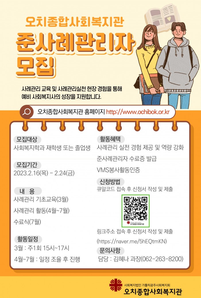 [오치종합사회복지관] 2023년 준사례관리자 양성사업 참여자 모집 페이지 정보 작성자 학과관리자 댓글 0건 조회 176회 작성일 23-02-16 10:58 목록 본문 . 이전글광주광역시서구장애인복지관직원채용공고(최중증 발달장애인 융합돌봄센터) 23.02.17 다음글나주시노인복지관 직원 채용 23.02.14 댓글 0 댓글목록 등록된 댓글이 없습니다.