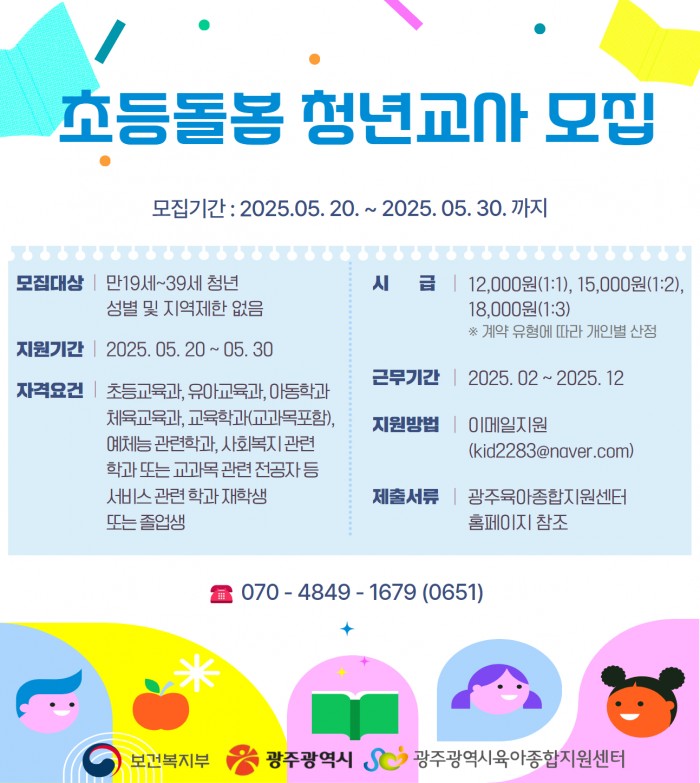 광주육아종합지원센터 청년사회서비스사업단 초등돌봄서비스 청년교사 모집