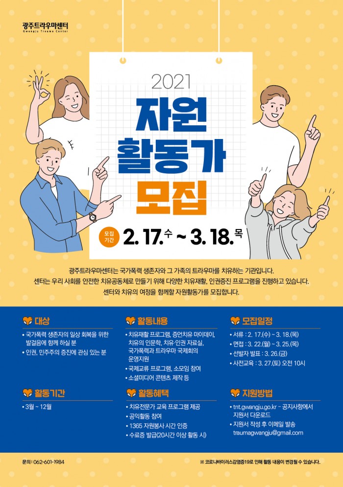 [광주트라우마센터] 2021 광주트라우마센터 자원활동가 모집