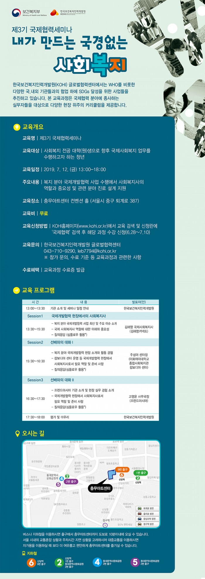 [한국보건복지인력개발원 글로벌협력센터] 제3기 국제협력세미나 교육 안내 및 선발