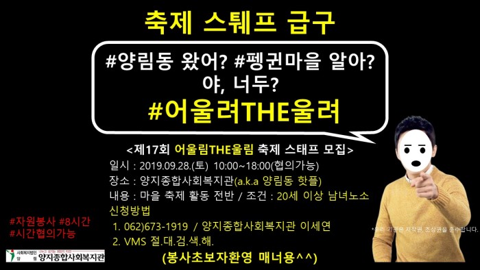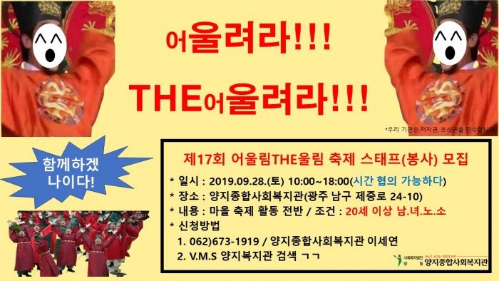 양지종합사회복지관 제 17회 버들 숲 마을축제 '어울림THE울림' 자원봉사 모집