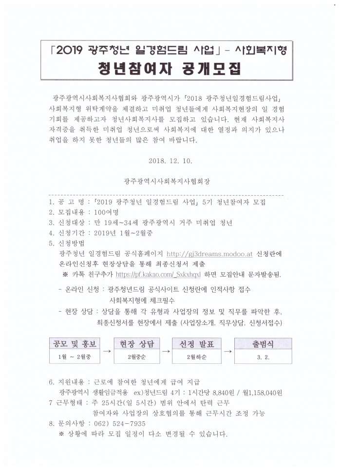 2019 광주청년 일경험드림 사업 5기 청년참여자 모집 안내