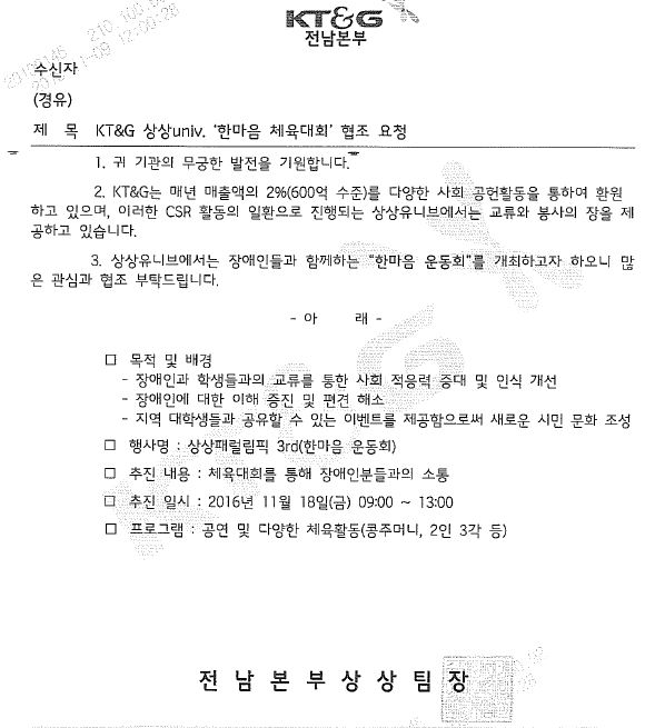 KT&G 상상univ. '한마음 체육대회' 홍보