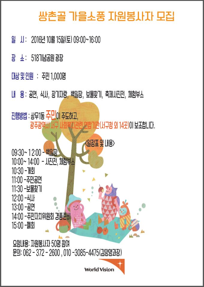 월드비전 - 쌍촌골 가을소풍 자원봉사자 모집