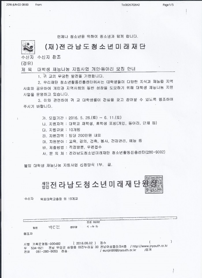 전라남도청소년미래재단 - 대학생 재능나눔 지원사업 개인.동아리 모집