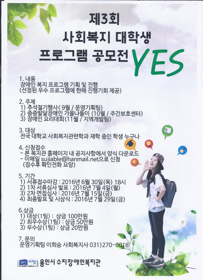 용인시 수지장애인복지관-제3회 사회복지대하생 프로그램 아이디어 공모전 홍보
