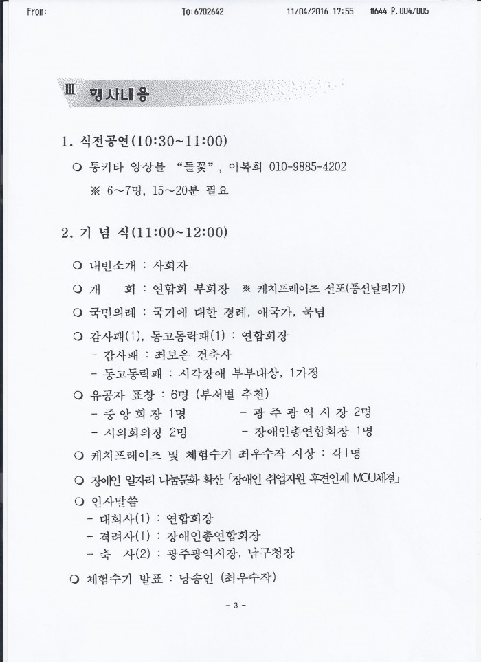 주요내용 : 식전공연, 기념식, 장애인, 취업지원 후견인제 MOU체결, 체험수기발표, 어울림한마당, 체험부대행사 등