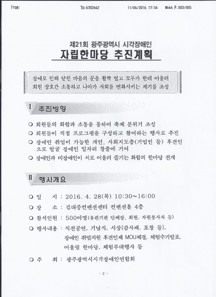 광주광역시시각장애인 자립한마당 - 자원봉사자 모집