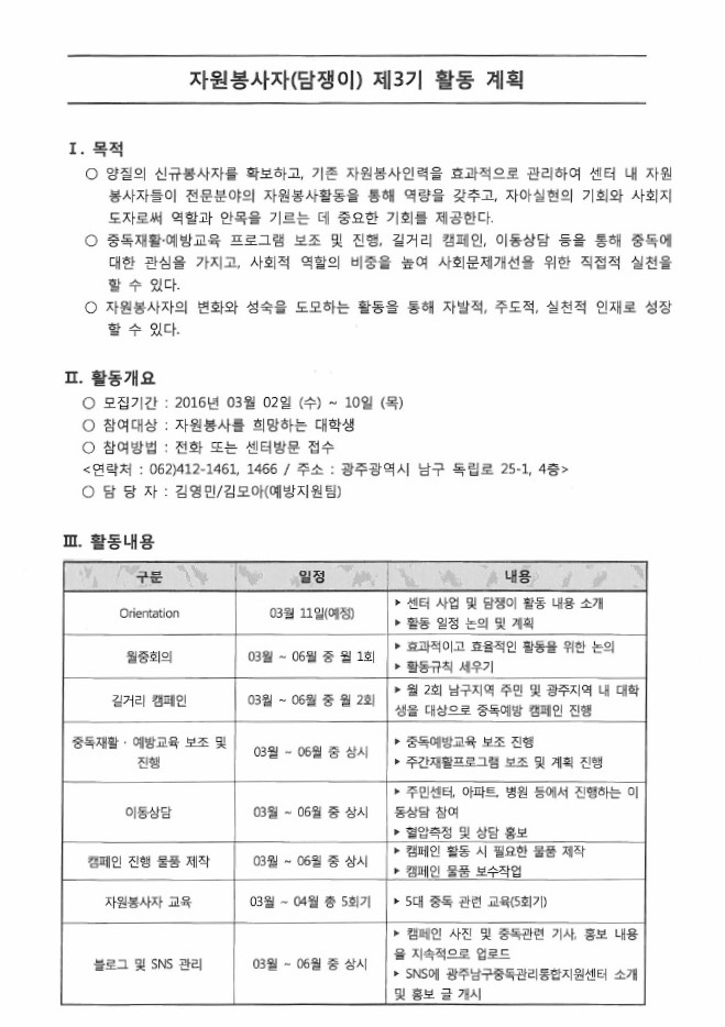 남구중독관리센터 자원봉사자 모집 안내