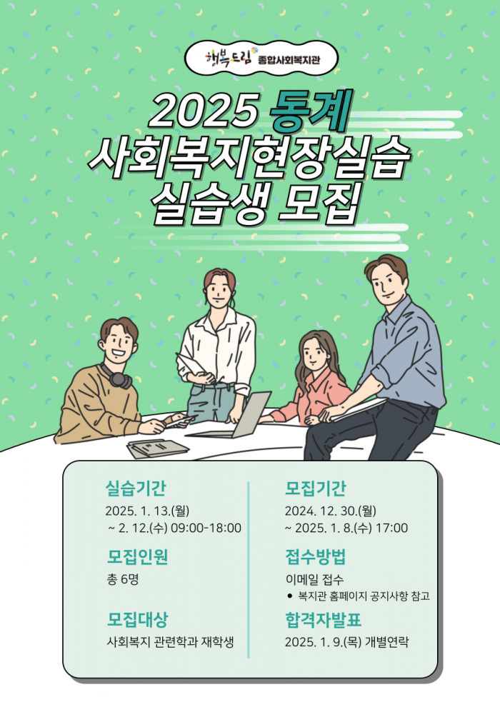2025년 행복드림종합사회복지관 동계 사회복지 현장실습생 모집