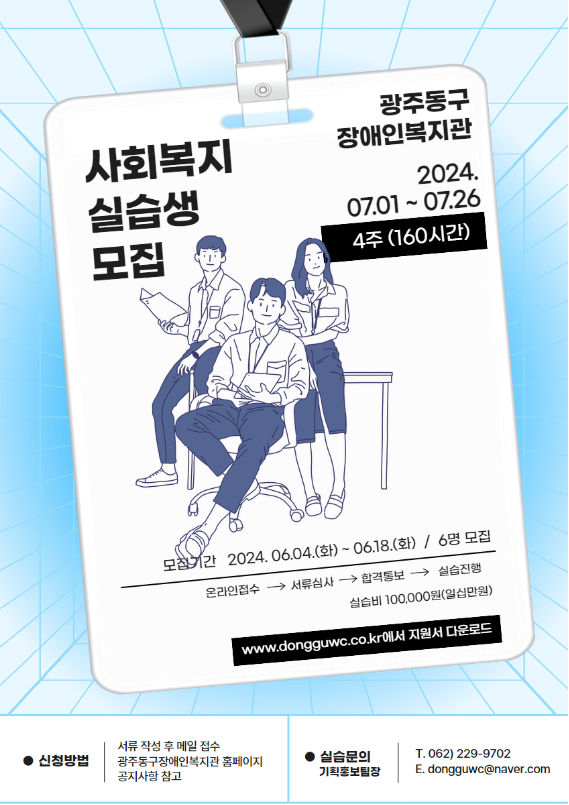 광주 동구장애인복지관 2024년 하계 사회복지현장실습생을 모집합니다.