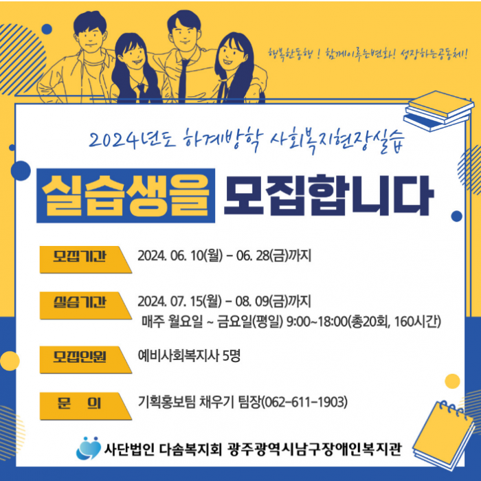 광주광역시남구장애인복지관 2024년 하계 사회복지현장실습생 모집