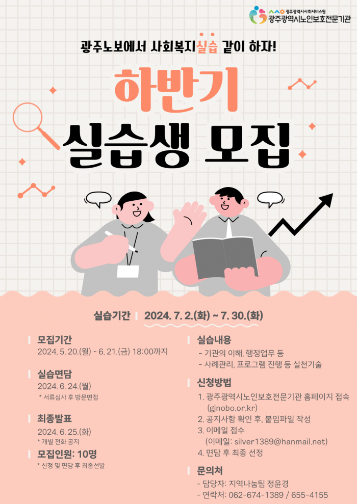 [광주광역시노인보호전문기관] 2024년도 하반기 사회복지현장실습생 모집