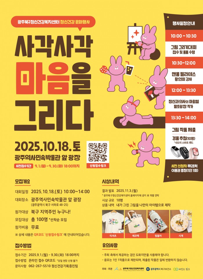 사. 신청방법: QR코드 스캔 (포스터 및 광주북구정신건강복지센터 홈페이지 팝업창에 게재)