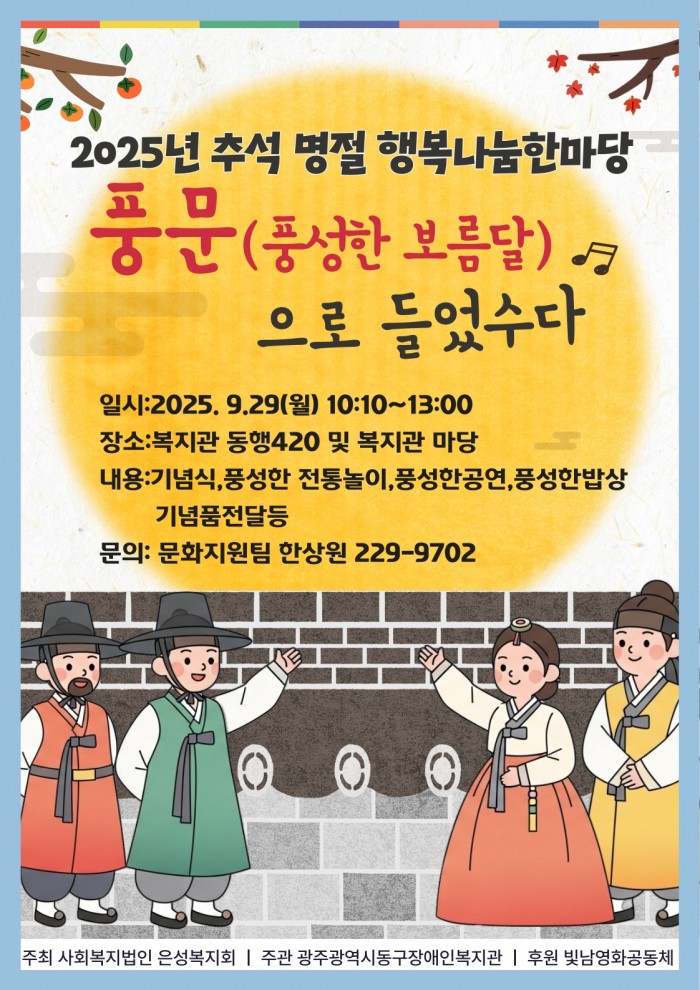 광주광역시동구장애인복지관에서 다가오는 추석 명절 행사를 함께할 스태프 / 식당보조 자원봉사자를 모집 페이지 정보 작성자 학과관리자 댓글 0건 조회 84회 작성일 25-09-15 15:19 목록 본문 이전글{광주광역정신건강복지센터} 2025년 광주 정신건강 문화행사 참여 및 홍보 협조 요청 공문 25.09.23 다음글빛고을노인건강타운 현장체험학습「노대마실」견학 프로그램 운영 안내 25.09.11 댓글 0 댓글목록 등록된 댓글이 없습니다.