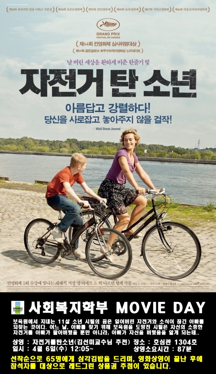 4월 6일(수) MOVIE DAY 자전거를 탄 소년 (Le Gamin Au Velo , The Kid With A Bike ,…