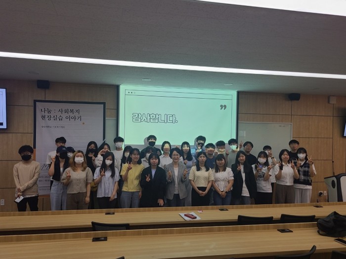 2023년도 1학기 사회복지현장실습 발표회 했어요. 4학년 학생들 모두 파이팅 합시다!