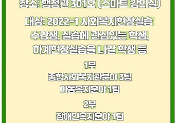 지난 5월 31일(월) 행정관 301호에서 2022-1 동계사회복지현장실습발표회가 개최..