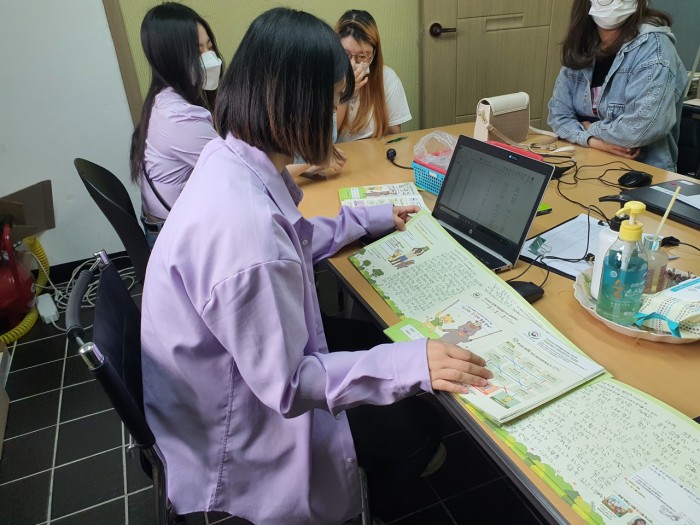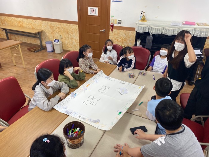 코로나 방역지침 지키면서 사회복지학부 소모임 뚜에이오, 다다, 까끔 회원들이 굿네이버스, 빛고을종합복지관, 청소년 수련관에서 자원봉사를 하고 있어요~