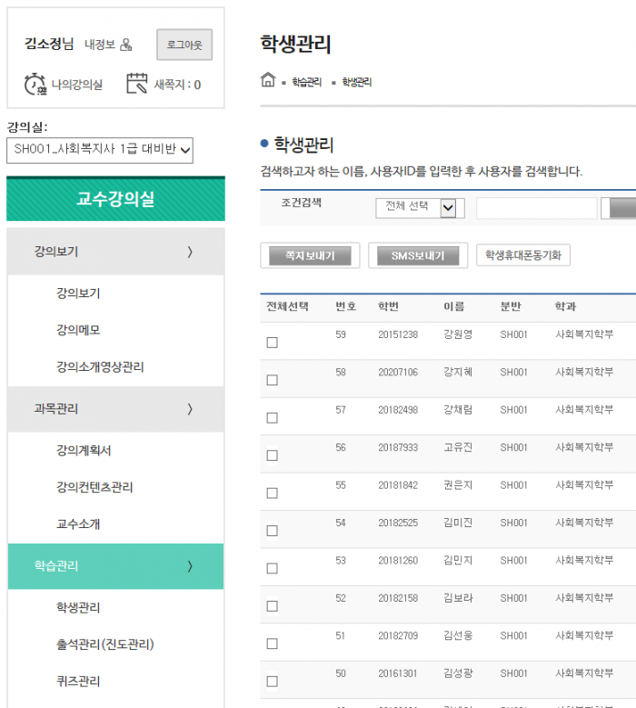 59명의 4학년 학생들이 이캠퍼스에서 내년 2월에 있을 사회복지사 1급 자격증 시험에 대비하여 공부중입니다.