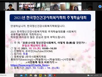 대해 공유하고, 자기 주도형 참여 분과를 선정하고, 2021 한국정신건강사회복지학회 추계학술대회 전달 세미나 준비 모임을 가졌다.