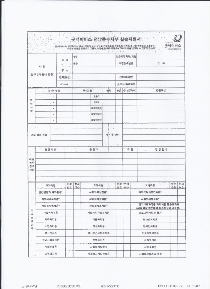 2) 접수방법 : 굿네이버스 전남중부지부 홈페이지 내 실습신청서 작성 후 방문접수