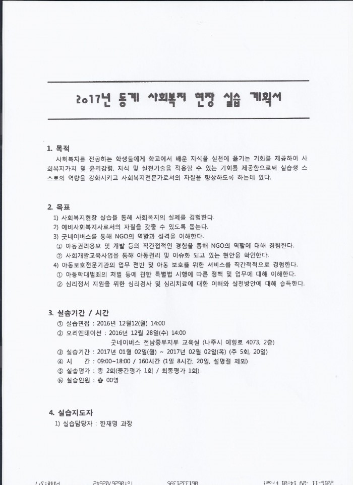 가. 실습명 : 2017년 굿네이버스 전남중부지부 동계 사회복지 현장 실습