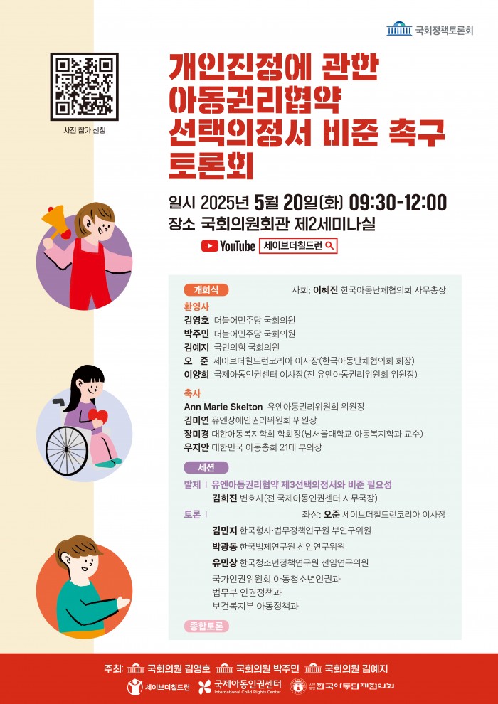 세이브더칠드런 개인진정에 관한 아동권리협약 선택의정서 비준 촉구 토론회 안내