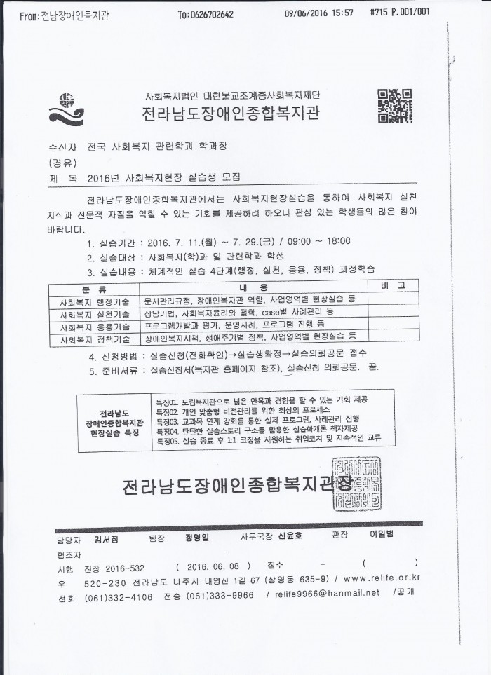 전라남도장애인종합복지관-2016 사회복지현장 실습생 모집 페이지 정보 작성자 관리자 댓글 0건 조회 622회 작성일 16-06-09 16:54 목록 본문 이전글귀일정신요양원-2016 사회복지현장실습생 모집 16.06.09 다음글2016 광주광역시쟁애인종합복지관 사회복지현장실습생 모집 16.06.09 댓글 0 댓글목록 등록된 댓글이 없습니다.