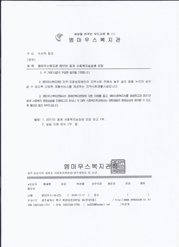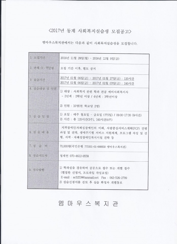 엠마우스복지관 - 2017년 동계 사회복지실습생 모집 페이지 정보 작성자 학과관리자 댓글 0건 조회 707회 작성일 16-11-18 09:58 목록 본문 . 이전글목포이랜드노인복지관 - 2017년 동계방학 사회복지 현장실습생 모집 16.11.18 다음글의료법인 인광의료재단 - 2017년도 동계 사회복지현장실습생 모집 16.11.15 댓글 0 댓글목록 등록된 댓글이 없습니다.