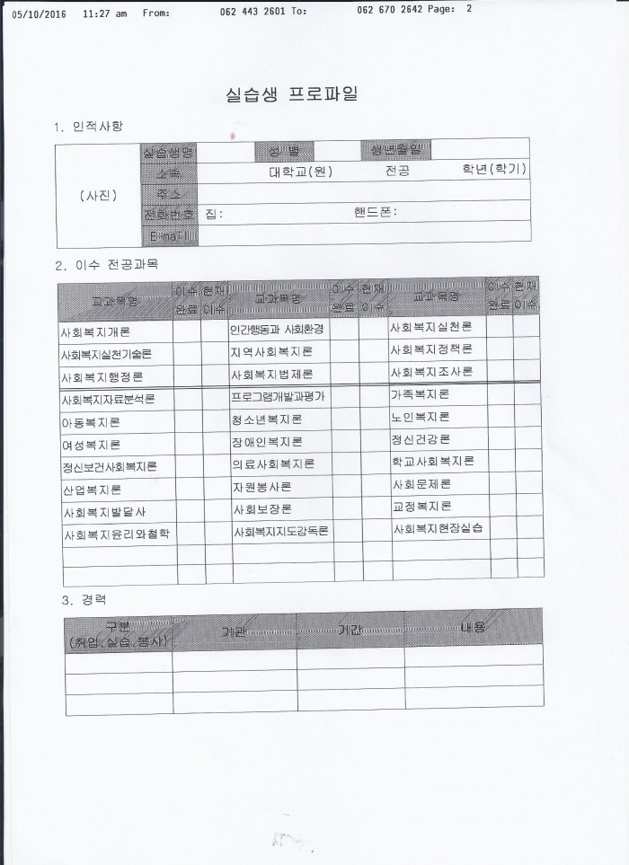 2016년 월드비전 무진종합사회복지관 하계 사회복지 현장실습 신청 안내 페이지 정보 작성자 관리자 댓글 0건 조회 576회 작성일 16-05-20 13:19 목록 본문 사업명 : 2016년 사회복지 현장실습(하계) 실습일정 : 2016년 7월 4일(월)~2016년 7월 29일(금), 매주 월~금, 160시간 실습분야 : 사회복지행정, 사례관리, 프로포절, 모금마케팅 등 실습생자격요건 : 사회복지관련학과 3학년 이상(4학기이상 수강), 자원봉사 40시간 이상 활동한 자, 실습 후 지속적으로 자원봉사를 할 수 있는 자, 성실히 실습에 임하는 자 등 신청기간 : 2016년 5월 9일 ~ 5월 19일 면접실시 : 개인별 면접 진행 후 합격 여부 결정 실습생모집인원 : 각 대학교별 2명 실습비 : 70,000원 담당자 및 연락처 : 김한나 사업팀장(062-372-2600) / hhaa312@worldvision.or.kr) 이전글2016년 하계 사회복지현장실습 모집-광주광역시동구장애인복지관 16.05.20 다음글2016학년도 밤밭노인복지관 하계 사회복지현장실습생 모집 16.05.20 댓글 0 댓글목록 등록된 댓글이 없습니다.