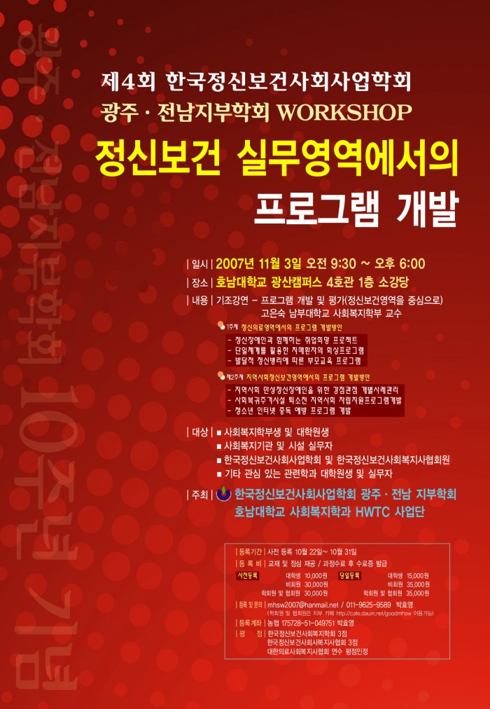 제4회 한국정신보건사회사업학회 광주전남지부 워크샵 개최