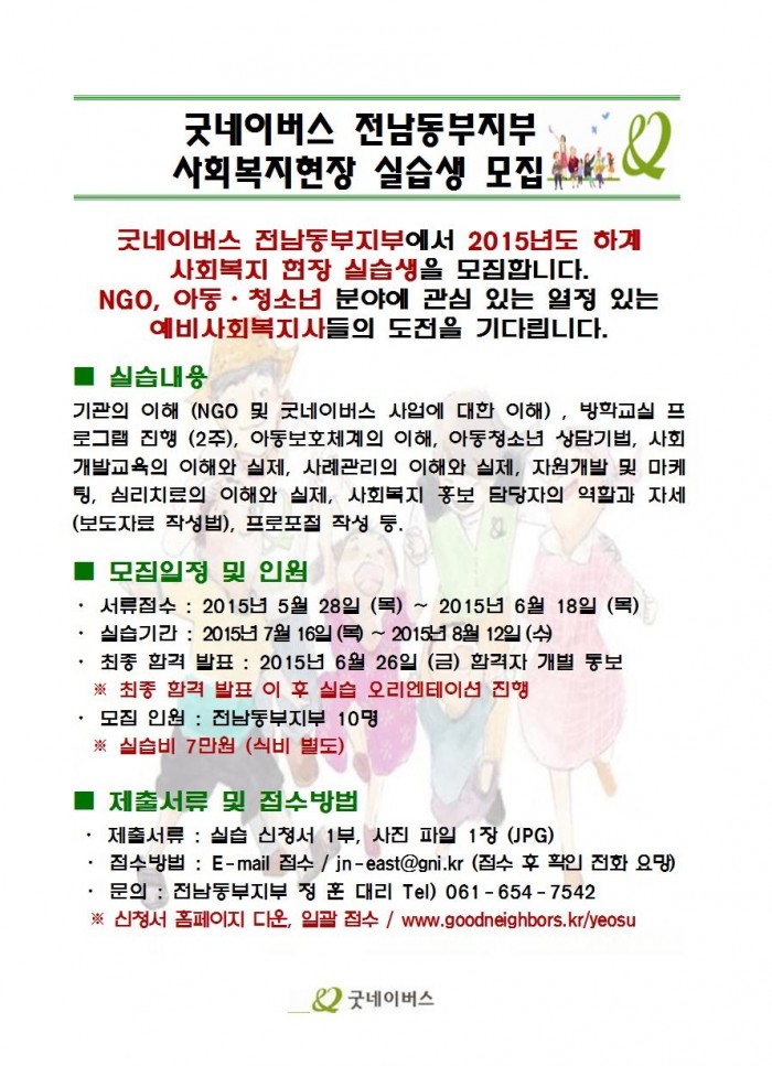 굿네이버스 전남동부지부 사회복지현장실습생 모집 안내