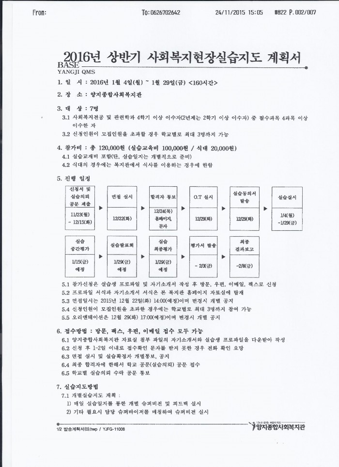 양지종합사회복지관 동계 현장실습생 모집안내 페이지 정보 작성자 관리자 댓글 0건 조회 704회 작성일 15-11-26 15:18 목록 본문 자세한 내용은 첨부된 파일과 기관홈페이지 확인하시기 바랍니다. 이전글광주동구건강가정지원센터 현장실습생 모집 안내 15.12.07 다음글굿네이버스 전남중부지부 동계현장실습생 모집안내 15.11.24 댓글 0 댓글목록 등록된 댓글이 없습니다.