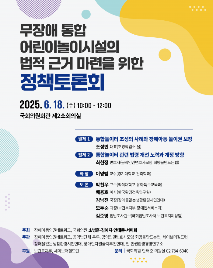 행사명: 무장애 통합 어린이놀이시설의 법적 근거 마련을 위한 정책토론회
