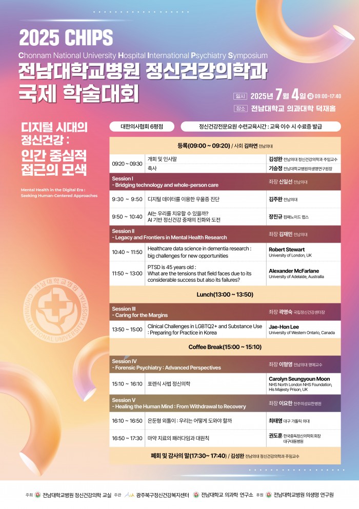 2025년 디지털 시대의 정신건강: 인간 중심적 접근의 모색이라는 주제로 국제 학술대회를 개최하니 정신건강 관련 종사자분들의 많은 관심 바랍니다.
