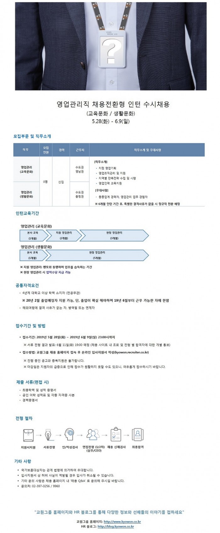 [교원그룹] 영업관리직 채용 전환형 인턴 수시채용 페이지 정보 작성자 학과관리자 댓글 0건 조회 207회 작성일 19-05-31 17:26 목록 본문 문의 : 02-397-0256 / 9960 관련링크 https://kyowon.recruiter.co.kr/app/jobnotice/view?systemKindCode=MRS2&… 167회 연결 이전글전남대학교병원 직원채용 공고 19.06.07 다음글광주북구청소년상담복지센터 청소년동반자(시간제) 채용 공고 19.05.15 댓글 0 댓글목록 등록된 댓글이 없습니다.