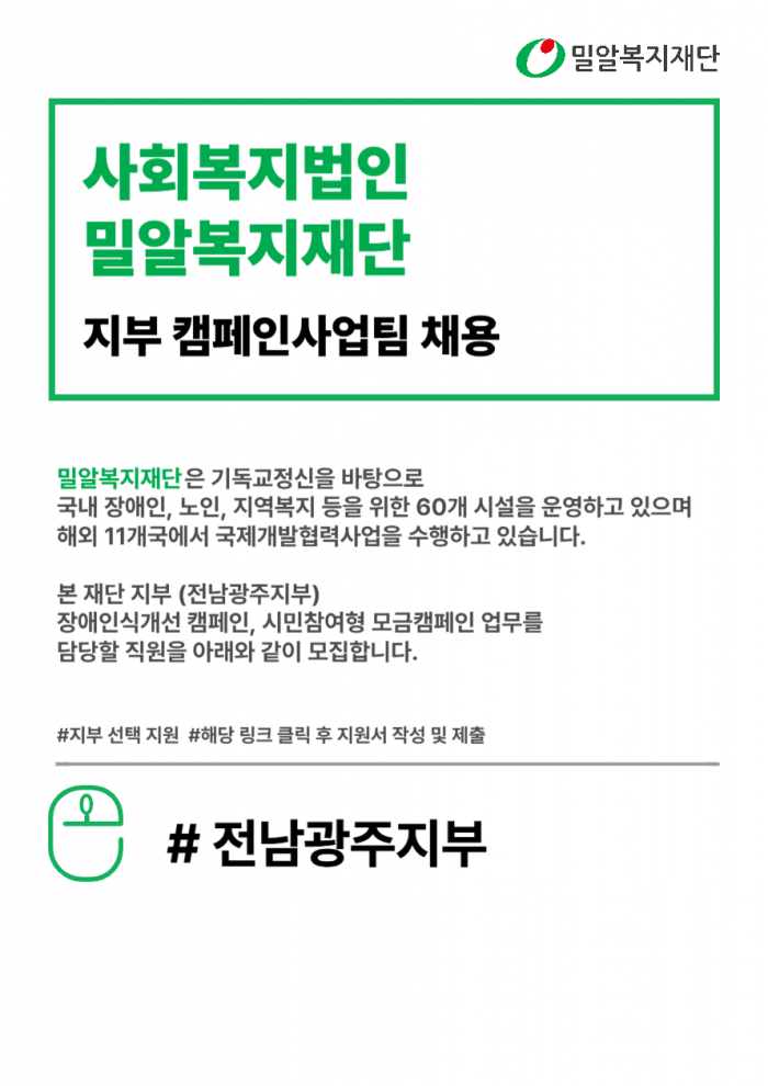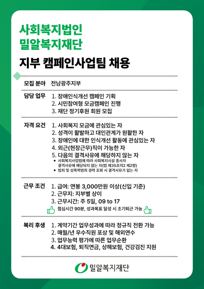 장애인 기본권 옹호를 위한 다양한 시민참여형 캠페인을 기획하고 수행하며 장애인지원사업 재원 마련을 위한 정기후원자를 모집합니다.(외근직)